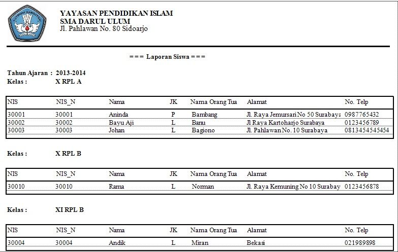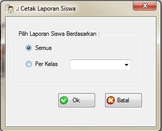 - Laporan data siswa, pilihan cetak semua siswa dan per kelas