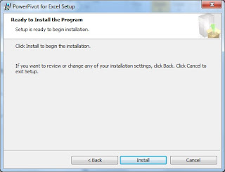 - Klik saja tombol "Install" tunggu hingga Add-In Power Pivot muncul pada Ms Excel 2010 Anda. Perhatikan gambar di bawah ini :